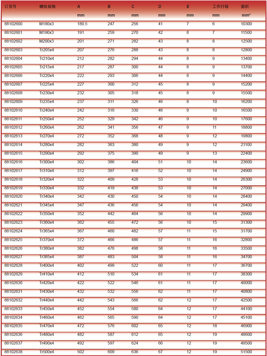 订货号 制造商型号 类型 规格 A B C D E 工作行程 价格 购物车