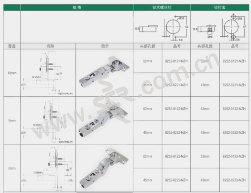 ·105度开启角度、适用16~22mm门板厚度