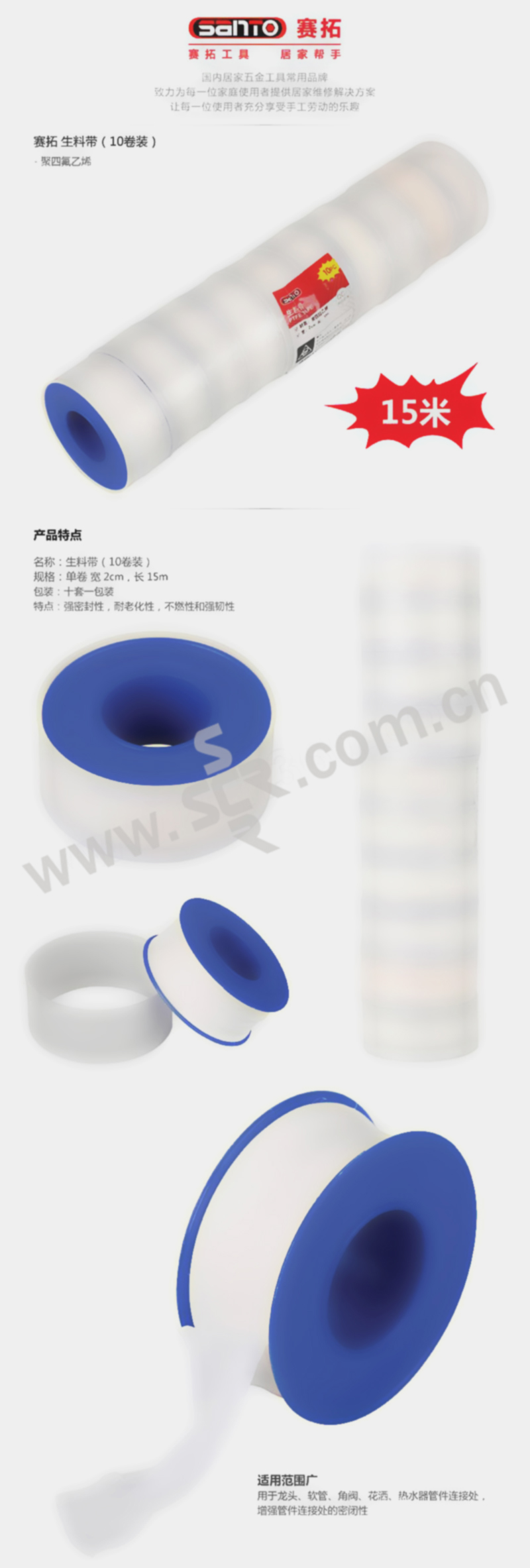 SANTO/赛拓 生料带 1949 15m 10卷装 1包