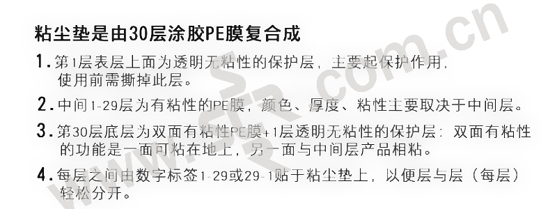 ·防水、防火、防潮的性能、回收利用价值高每层都附有高粘性涂层,光滑耐用,能快速、有效清除鞋底污物、灰尘,从而保持工作环境的清洁。