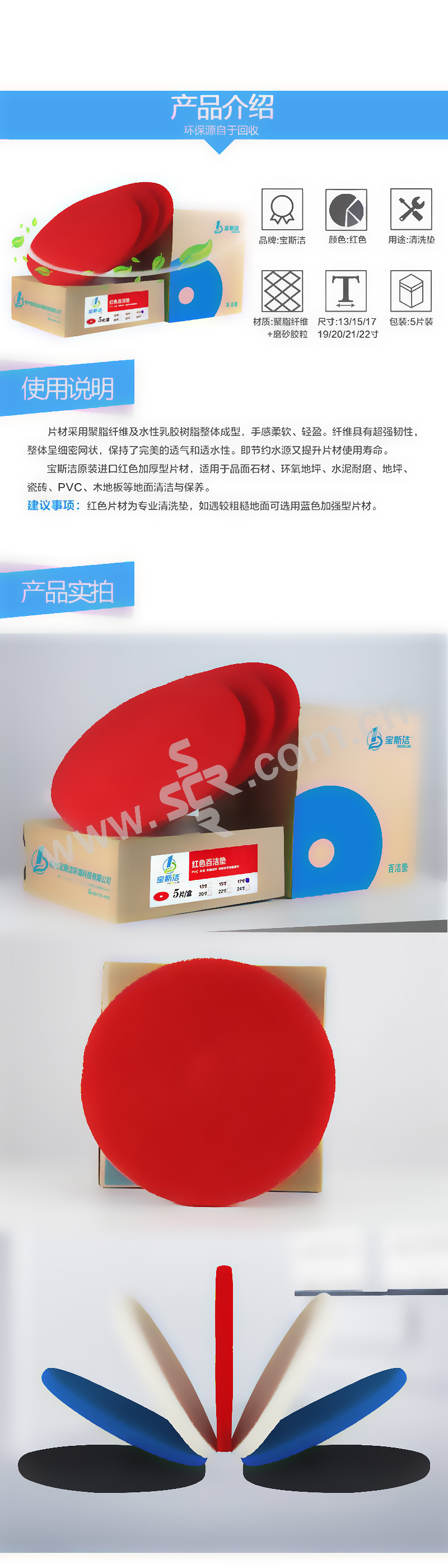 BSJ/宝斯洁 22寸进口地面清洗垫 红垫 22" 红色 1盒