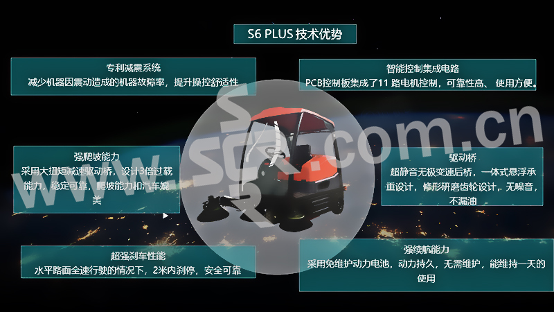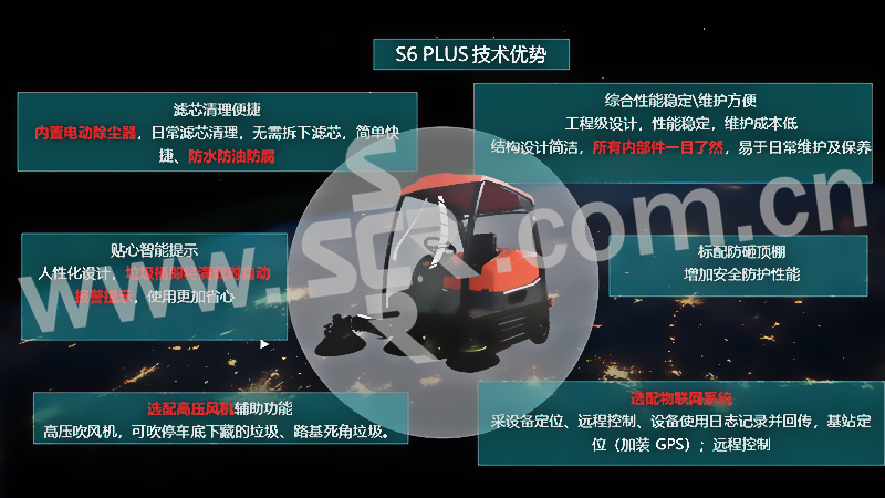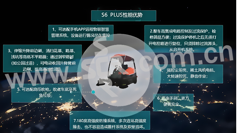 ·手机APP远程物联控制设备运行情况尽在掌握;伸缩升降前边刷清扫花基,路基,浅坑等高低不平的路面;整车高集成电路控制及过流保护,检修简单方便;强大的控尘系统,使用稀土风机电机,超大转速控尘,静音作业;汽车刹车,方便安全;带有减震系统,减少机器因为机器故障产生的故障率,操控舒适性强;防砸顶棚,增加安全防护性能;选配物联网系统,采设备定位远程控制设备使用日志记录并回传,基站定位(加GPS)远程控制