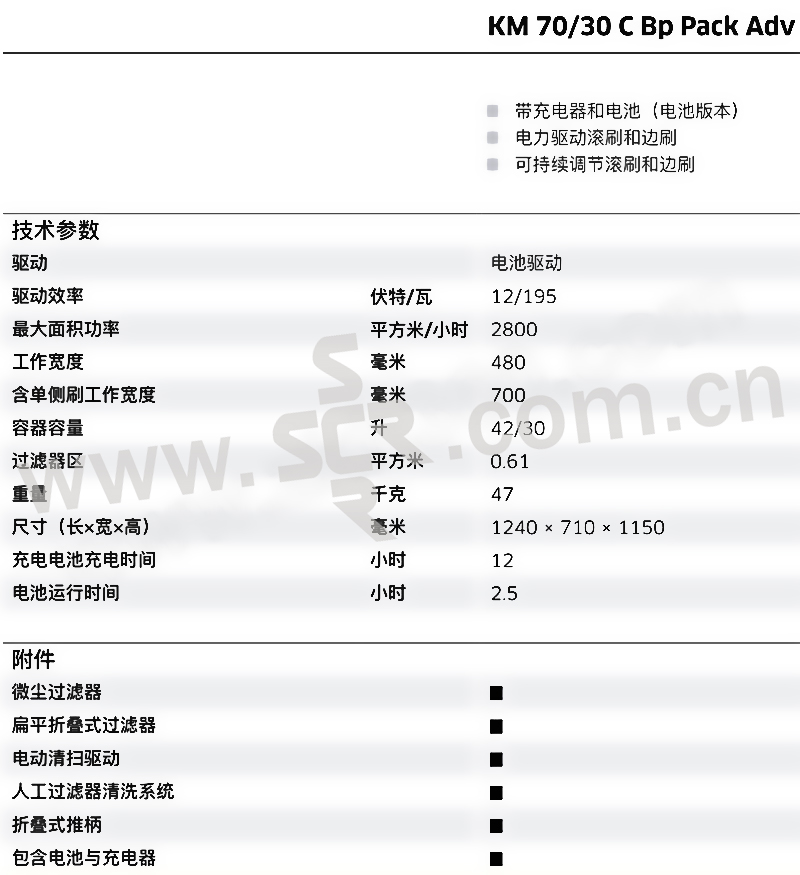 KARCHER/卡赫 手推式扫地机 KM 70/30 C Bp Pack Adv 清洁效率2800m2/h 清扫宽度480mm 1台