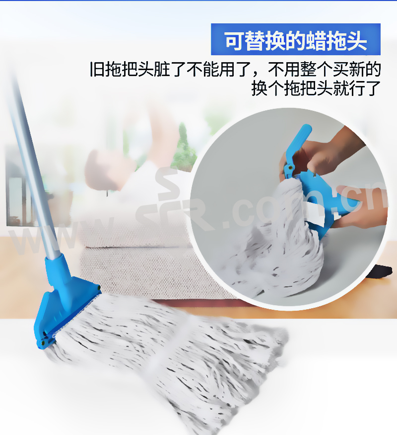 ·可替换拖把头,可反复洗涤,不易散落,吸尘吸水能力高