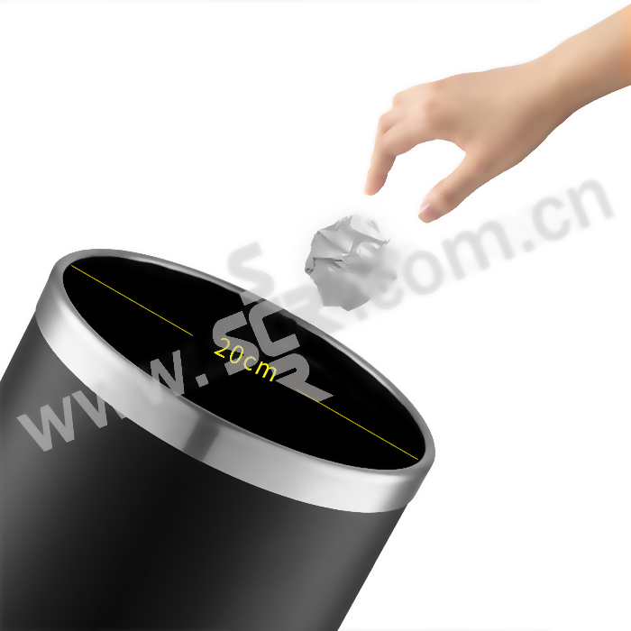 TONNEY/唐年 防指纹圆形烤漆垃圾桶 SW-9002Q φ200×300mm 8L 黑色 哑光圈 1个