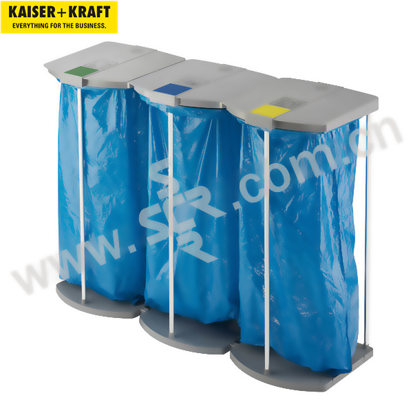 ·铝管框架。可折叠盖、桶盖框和底板由塑料制成。·标有色码的自粘膜用作桶盖标签。·以平板包装形式发货——简单的插入组装方式。·可回收垃圾袋支架,包括250个蓝色回收袋轻型、坚固、耐用铝制/塑料结构可扩展,可与夹紧系统随意组合整体式框架,带可轻松固定回收袋的松紧带
