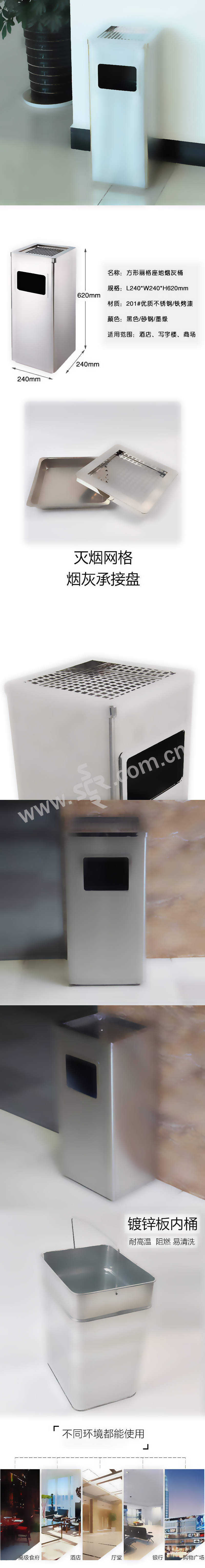 YUETONG/月桐 方形丽格座地烟灰桶 240×240×620mm 砂钢 1个