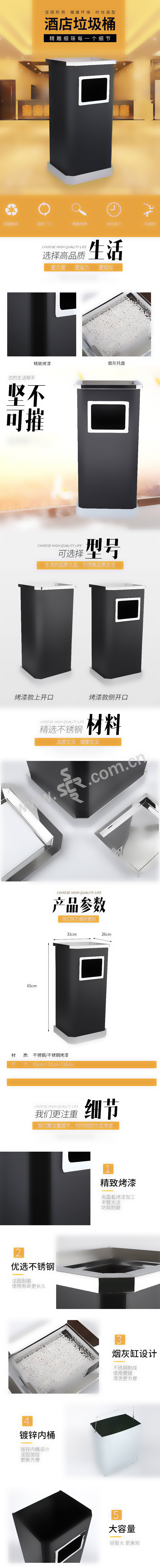 YUETONG/月桐 斜角座地烟灰桶 Y-169 310×260×650mm 黑色 烤漆 上开口 1个