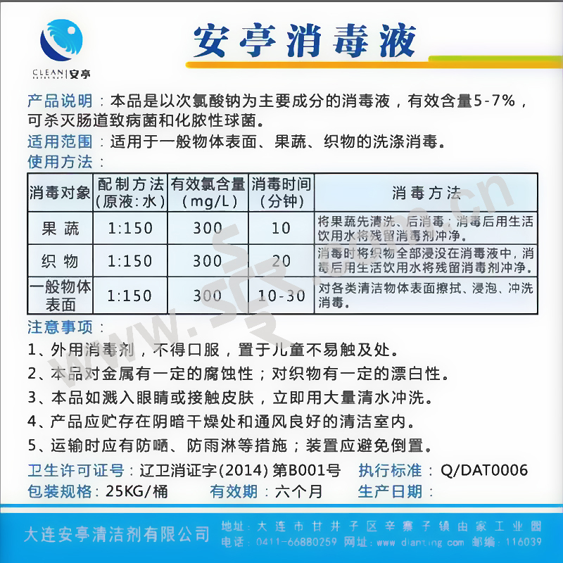 ANTING/安亭 消毒液 AT-605 25kg 1桶