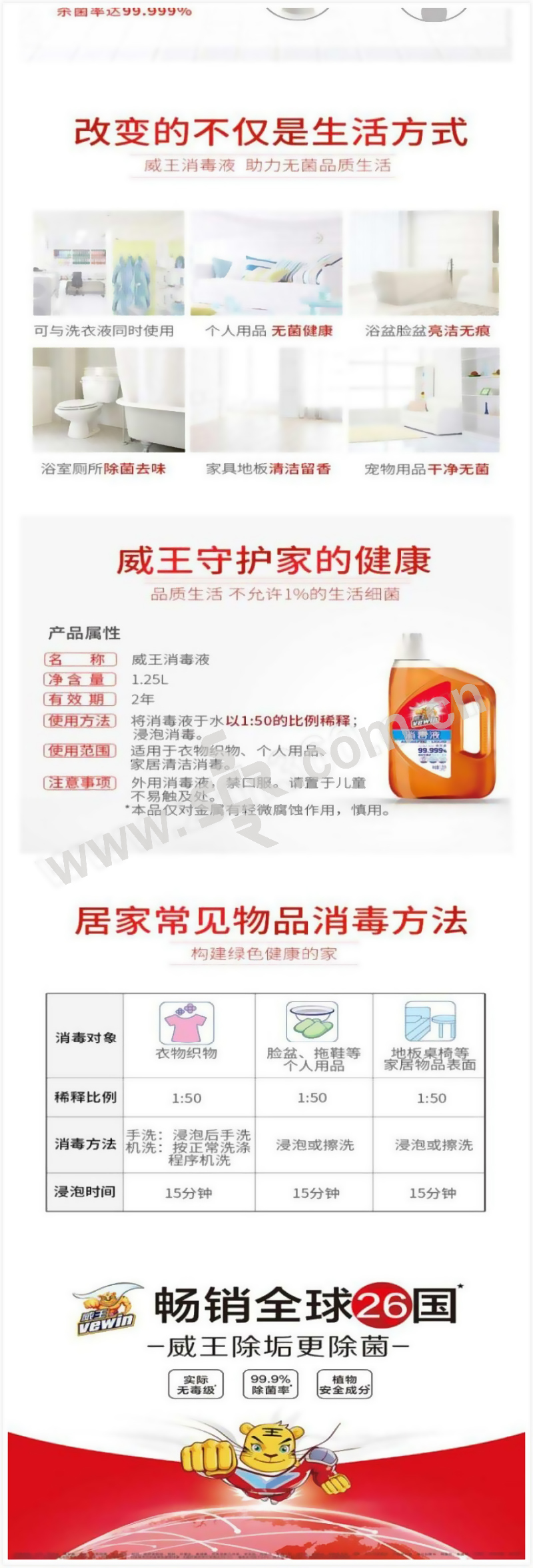 VEWIN/威王 消毒液 1.25L 1瓶