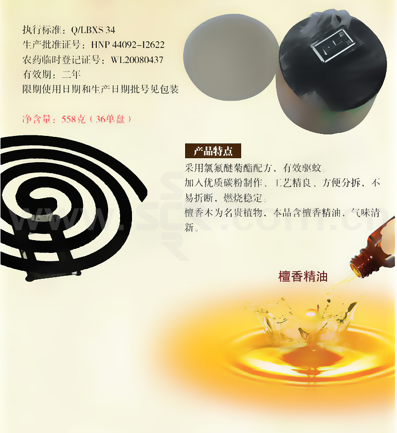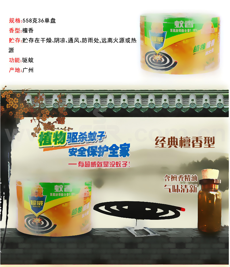 SUPERB/超威 微烟蚊香(加大盘家庭实惠装) 6920174763942 36盘装 648g 经典檀香型 1盒