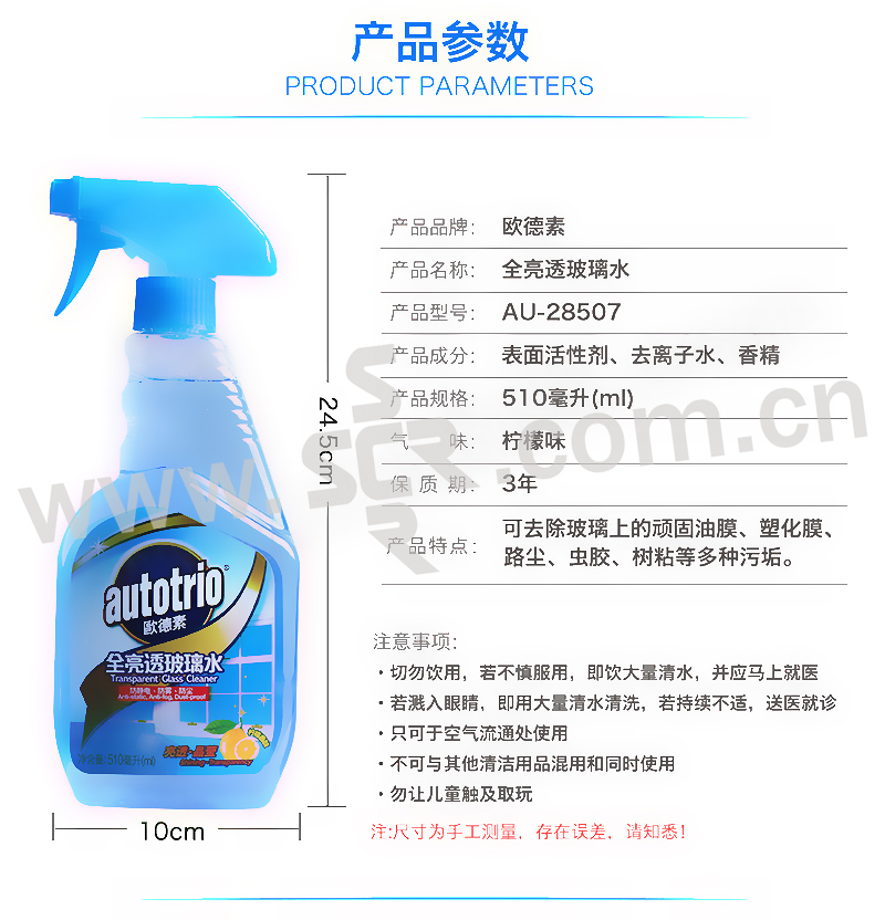AUTOSOL/欧德素 全亮透玻璃水 玻璃清洁剂 510mL 1瓶