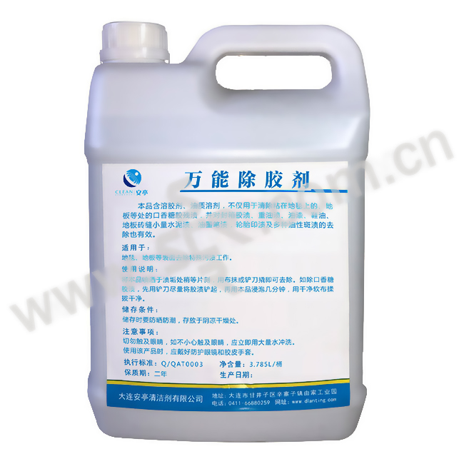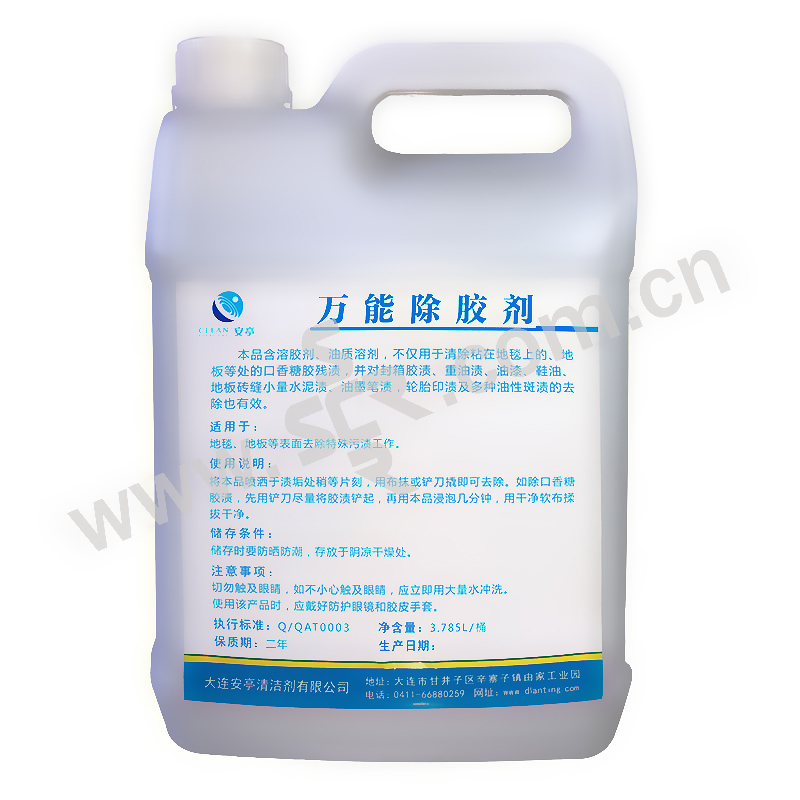 ·清除粘在地毯上的、地板等处的口香糖胶残渍,并对封箱胶渍、重油渍、油漆、鞋油、地板砖缝小量水泥渍、油墨笔渍,轮胎印渍及多种油性斑渍的去除也有效。