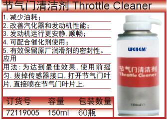 ·减少油耗; ·改善汽化器和发动机性能; ·发动机运行更安静,顺畅; ·可配合催化剂使用; ·有效保留原厂润滑剂的密封性。 ·应用用法:为达到最佳效果,使用前摇匀.拔掉传感器接口,打开节气门叶片,直接喷在节气门叶片上.