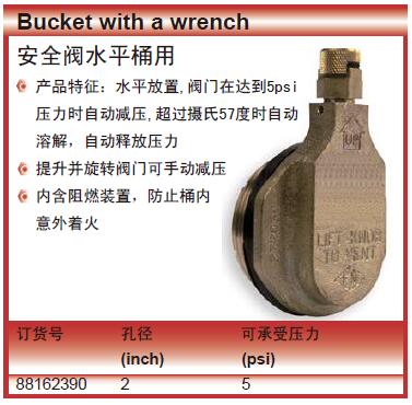 ·产品特征:水平放置,阀门在达到5psi压力时自动减压,超过摄氏57度时自动溶解,自动释放压力提升并旋转阀门可手动减压内含阻燃装置,防止桶内意外着火