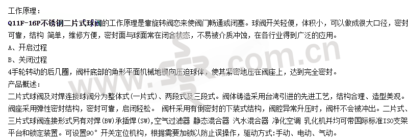 ·流体阻力小,其阻力系数与同长度的管段相等。结构简单、体积小、重量轻。紧密可靠,球阀的密封性好,在真空系统中也已广泛使用。操作方便,开闭迅速,从全开到全关只要旋转90°,便于远距离的控制。维修方便,球阀结构简单,密封圈一般都是活动的,拆卸更换都比较方便。在全开或全闭时,球体和阀座的密封面与介质隔离,介质通过时,不会引起阀门密封面的侵蚀。