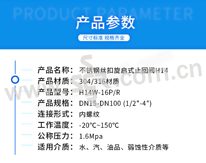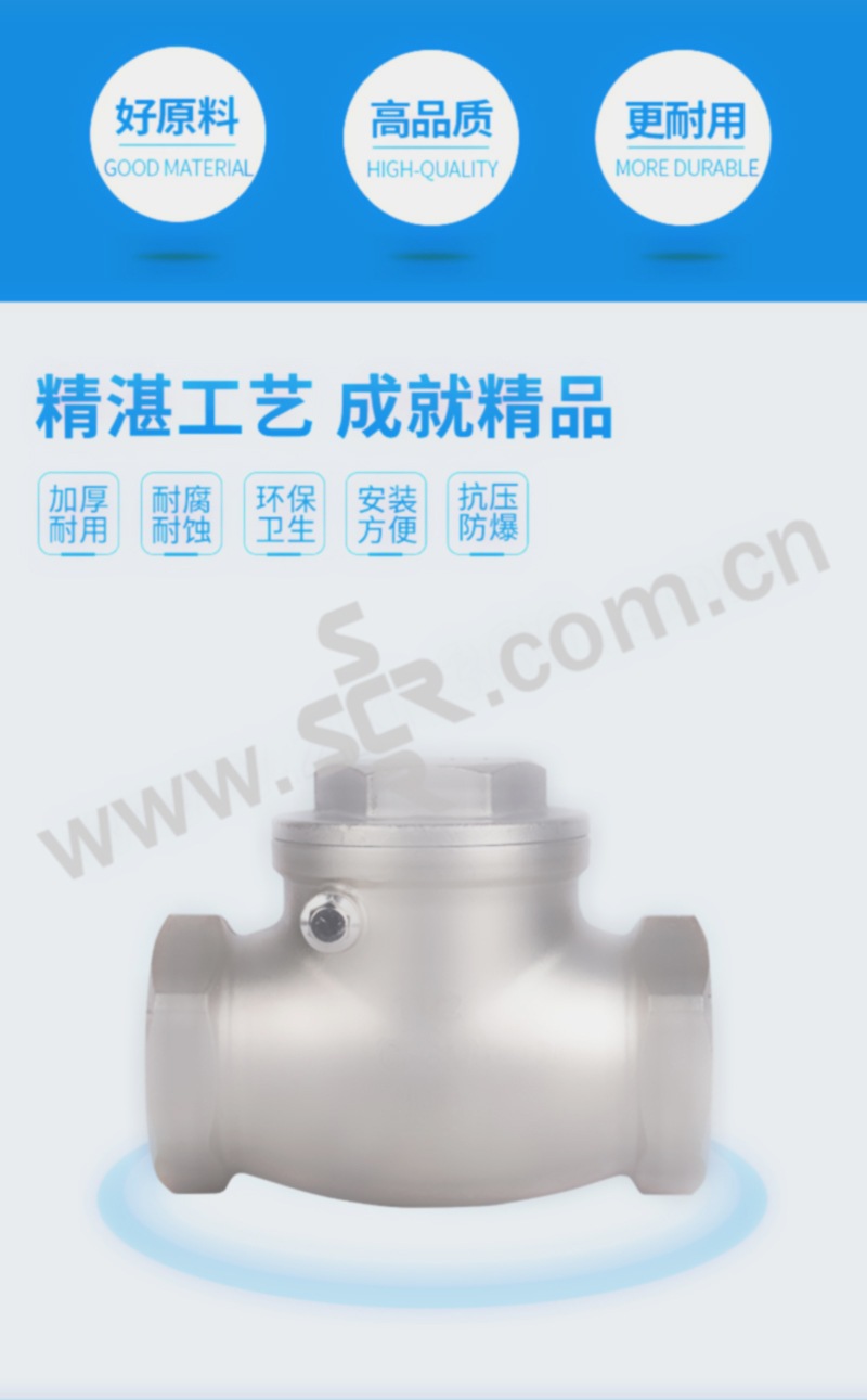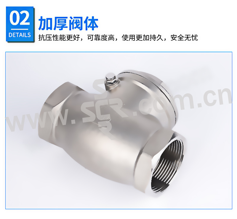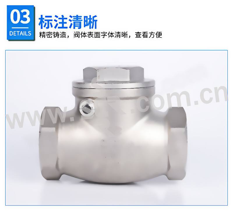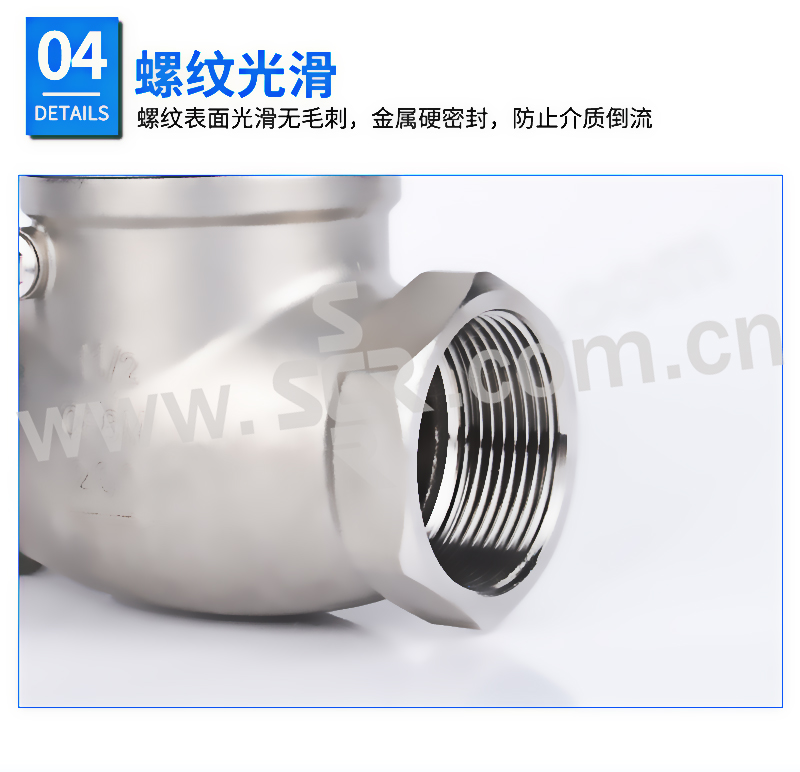 ·不锈钢材质,精选优质304/316不锈钢制造,不易生锈,耐腐耐蚀·加厚阀体,抗压性能更好,可靠度高,使用更加持久,安全无忧·标注清晰,精密铸造,阀体表面字体清晰,查看方便·螺纹光滑,螺纹表面光滑无刺,金属硬密封,防止介质倒流