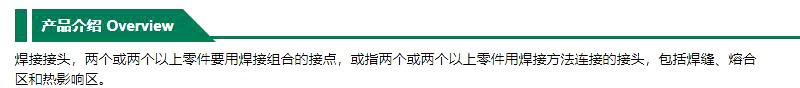 ·焊接接头,两个或两个以上零件要用焊接组合的接点,或指两个或两个以上零件用焊接方法连接的接头,包括焊缝、熔合区和热影响区