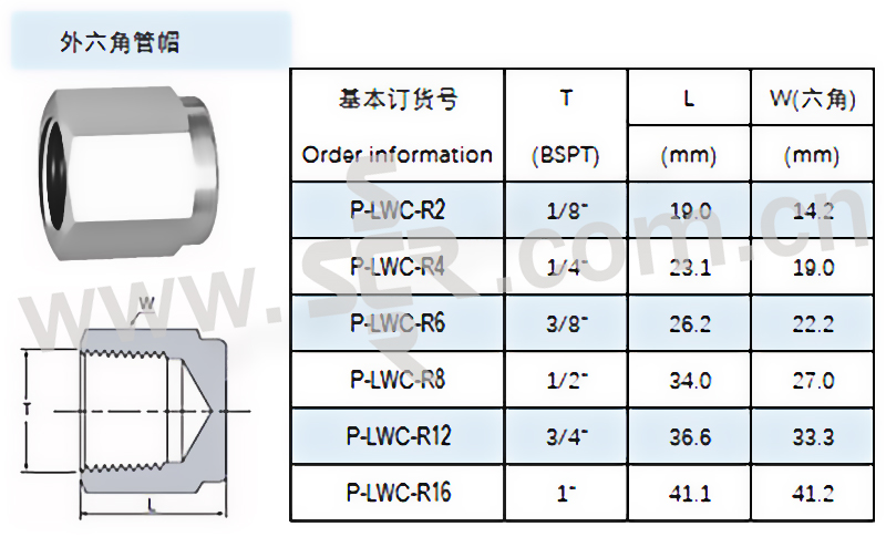 RG/锐阁 不锈钢304六角管帽 P-LWC-R2 Rc1/8" 1个