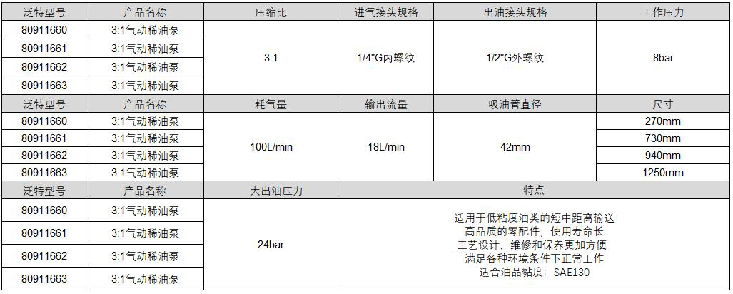 订货号 制造商型号 适用介质 材质 出油量 接口尺寸 适用气压 压缩比 进气接头规格 耗气量 输出流量 吸油管直径 尺寸 价格 购物车