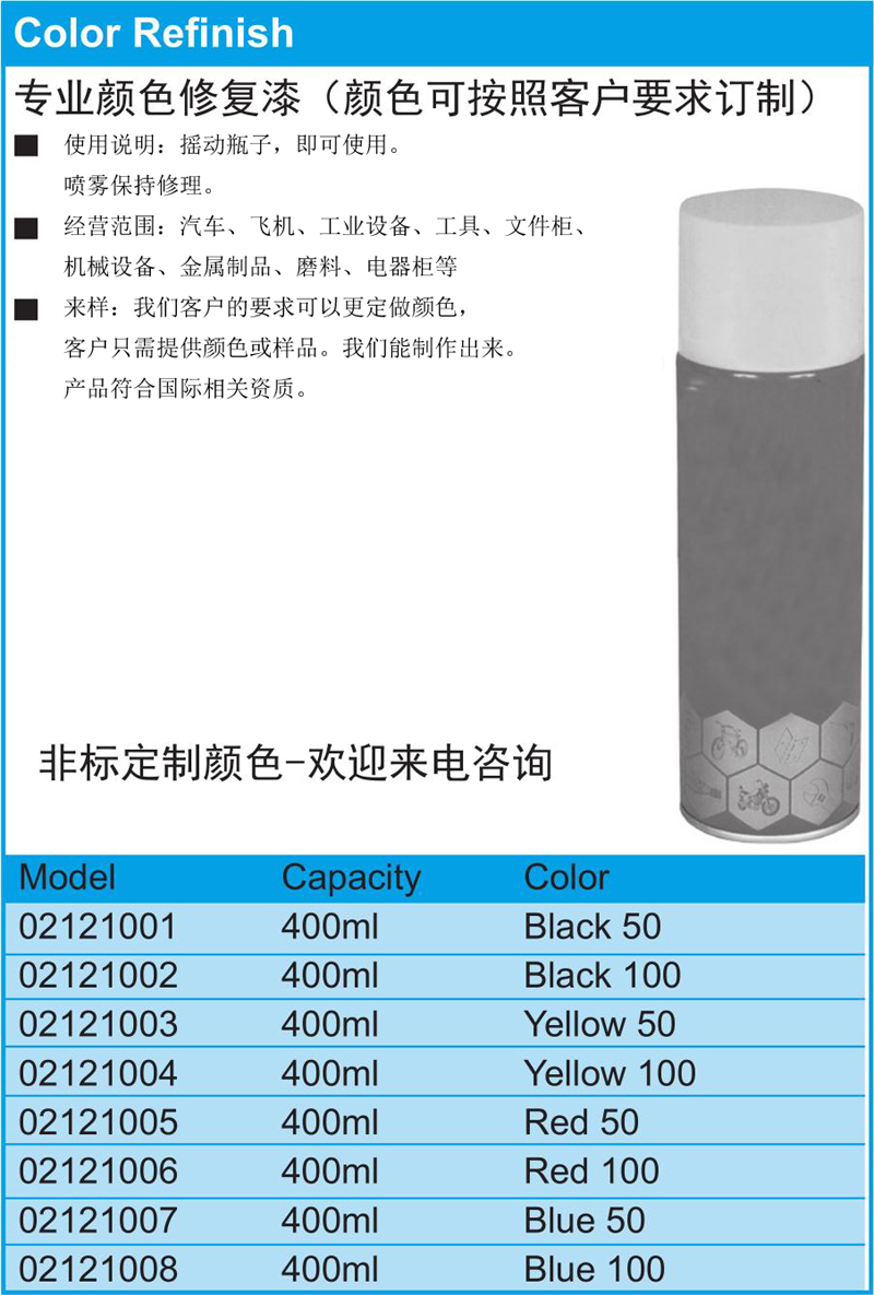 专业颜色修复漆(颜色可按照客户要求订制)