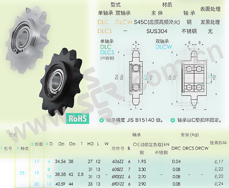 DL/正盟 DLC系列C型单轴承惰轮 DLC25-17-6 1个