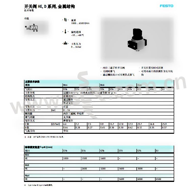 FESTO/费斯托 HEE系列开关阀 HEE-1/2-D-MIDI-24 内螺纹G1/2-内螺纹G1/2 1个