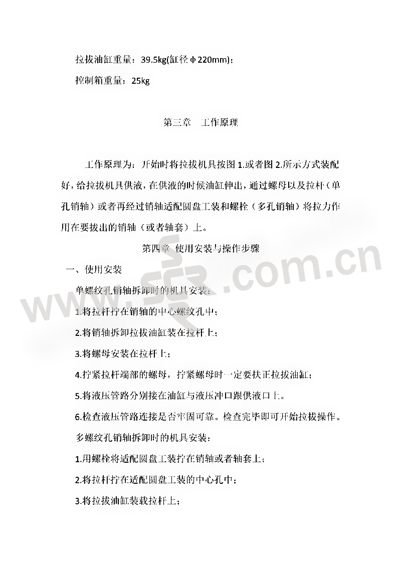 ·适用于煤矿井下或车间对采掘机械销轴的拆卸,使用现场必须具有乳化液泵站或液压油液压泵站,泵站压力不得大于31MPa。环境温度-10℃―40℃。