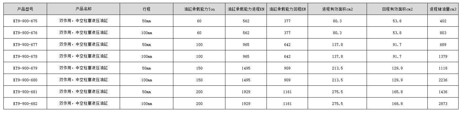 C21858 KT9-900-680 双作用通用 100mm 1495KN 909KN 213.5cm2 129.9cm2 2236cm3 1299cm3 258mm 100mm 87.2Kg 带提手 14144.00