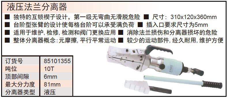 ·独特的互锁楔子设计,第一级无弯曲无滑脱危险 ·尺寸:310x120x360mm ·台阶型张臂的设计使每格台阶可以承受满负荷 ·插入口要求尺寸为5mm ·消除法兰损伤和分离器损坏的危险 ·整体分离器概念:元摩擦,平行平常运动 ·较少的运动部件,经久耐用,维护方便
