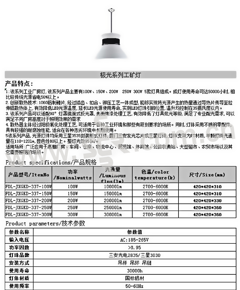 FEIDELANG/飞德朗 极光系列工矿灯 FDL-JXGKD-337-100W 1个