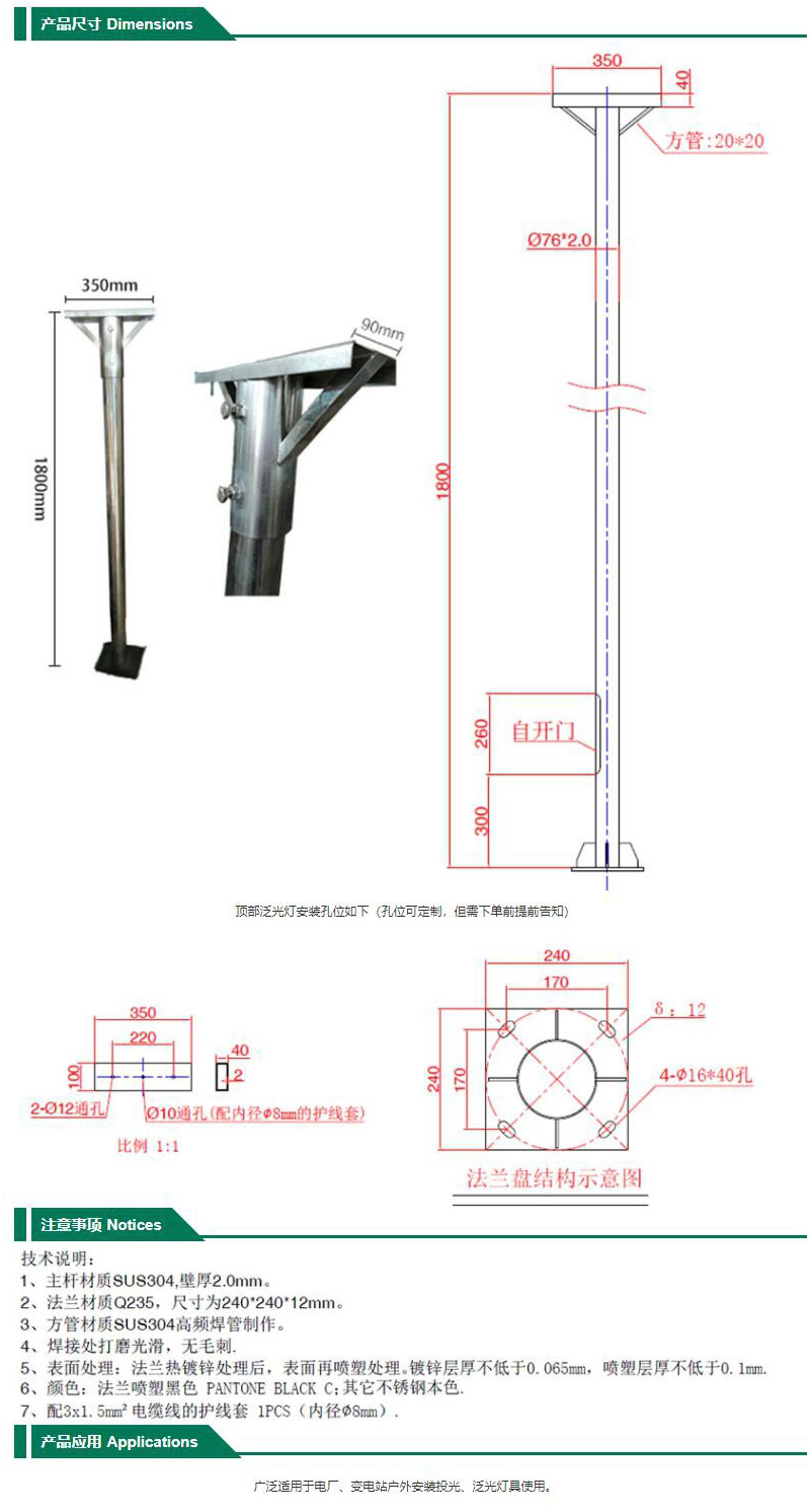 规格:  350mm*76mm*1800mm 制造商型号:  GE70-400-1688