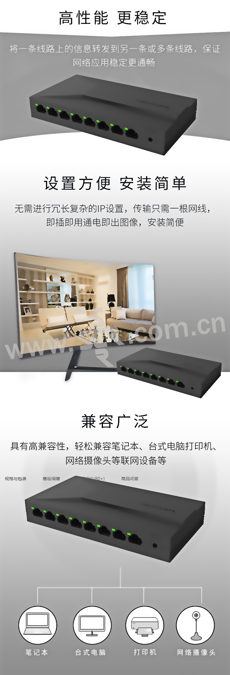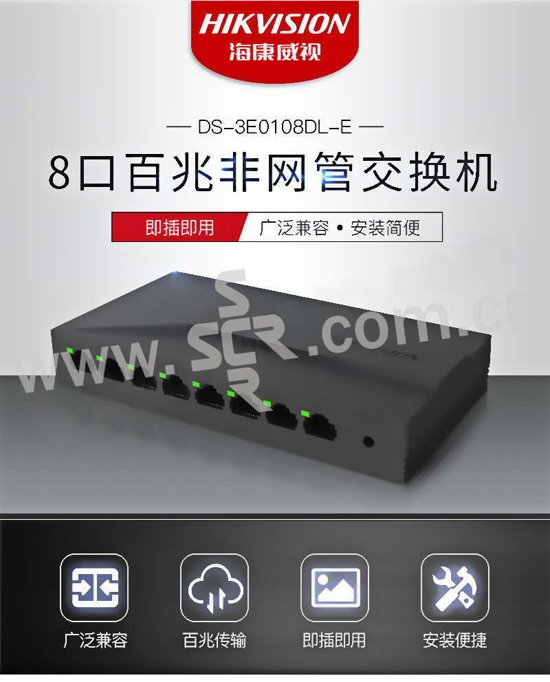 HIKVISION/海康威视 高品质塑壳百兆交换机 DS-3E0108DL-E 8口百兆 1台