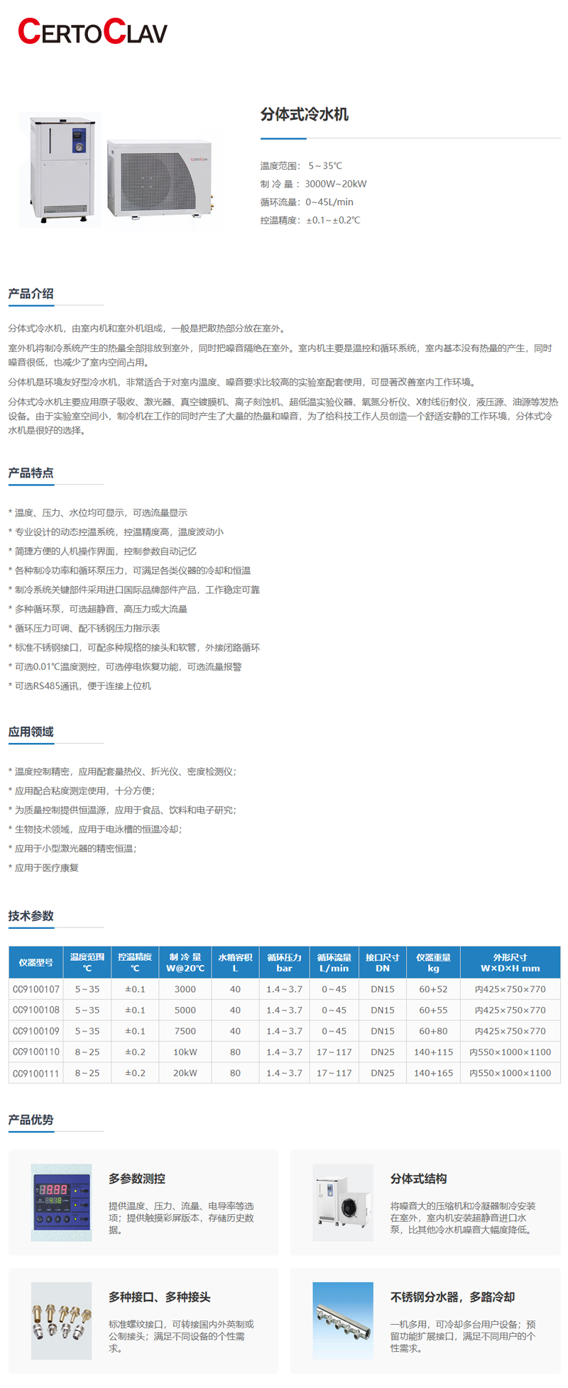 ·分体机是环境友好型冷水机,非常适合于对室内温度、噪音要求比较高的实验室配套使用,可显著改善室内工作环境。