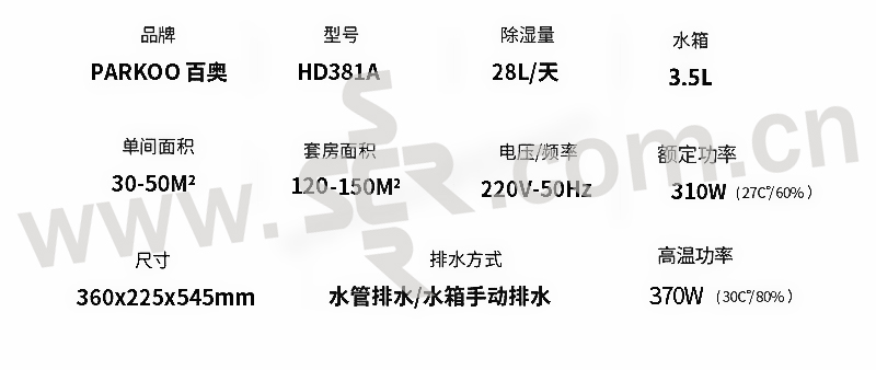 PARKOO/百奥 舒美系列 家用除湿机 HD381A 1台