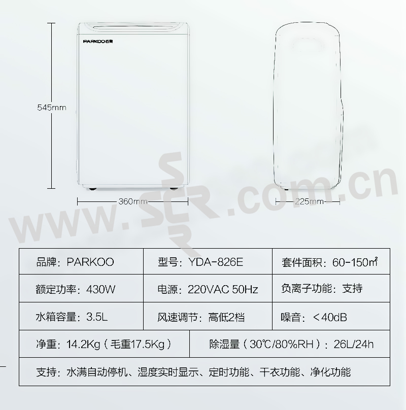 PARKOO/百奥 经典系列 家用除湿机 YDA-826E 1台