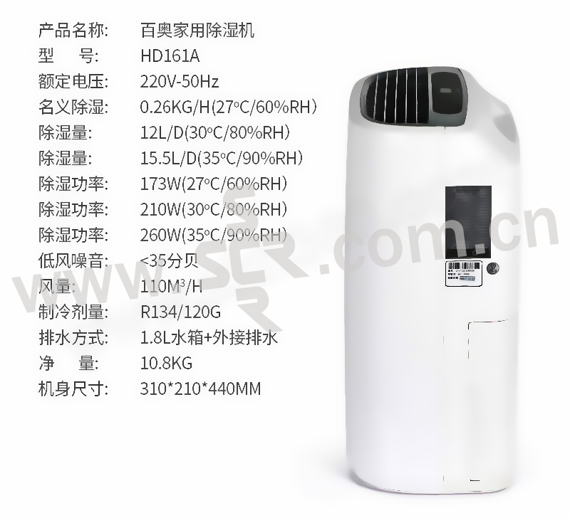 PARKOO/百奥 舒美系列 家用除湿机 HD161A 1台