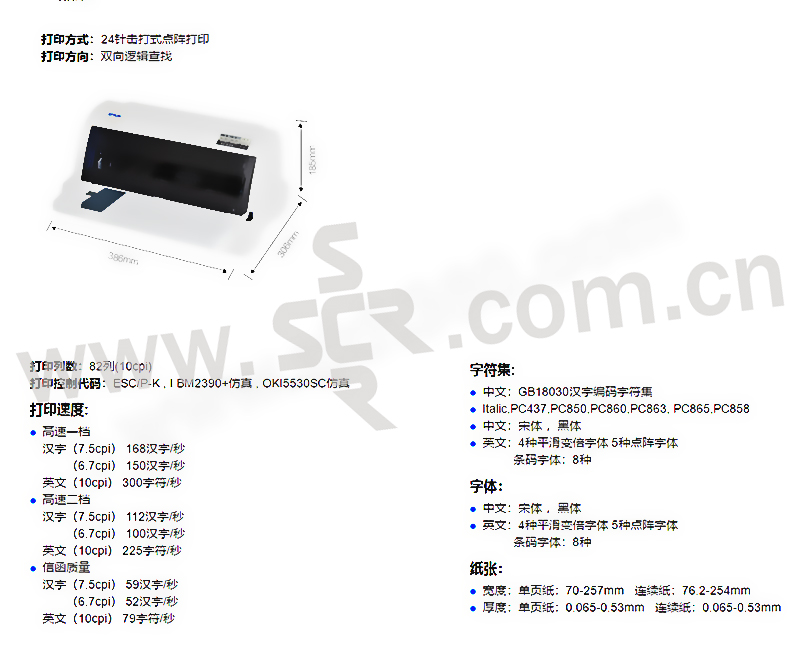 ·高速一档打印速度:168汉字/秒(7.5cpi)