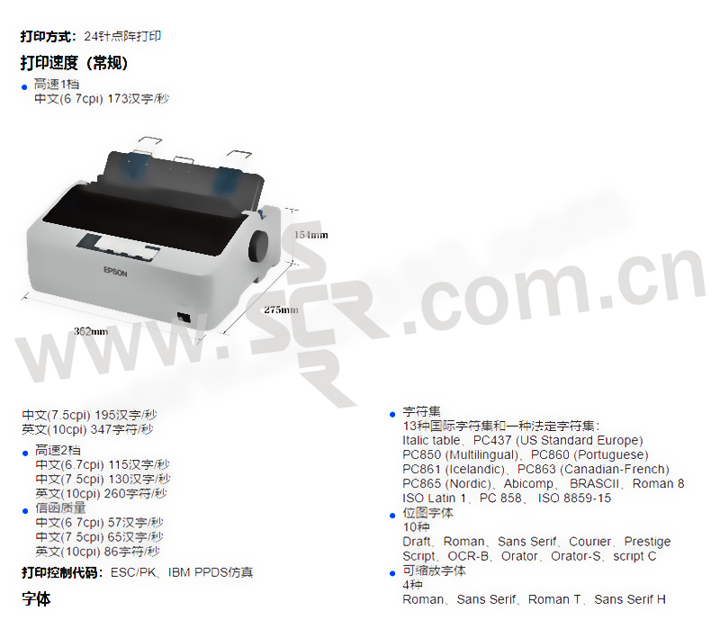 ·高速一档打印速度:195汉字/秒(7.5cpi)