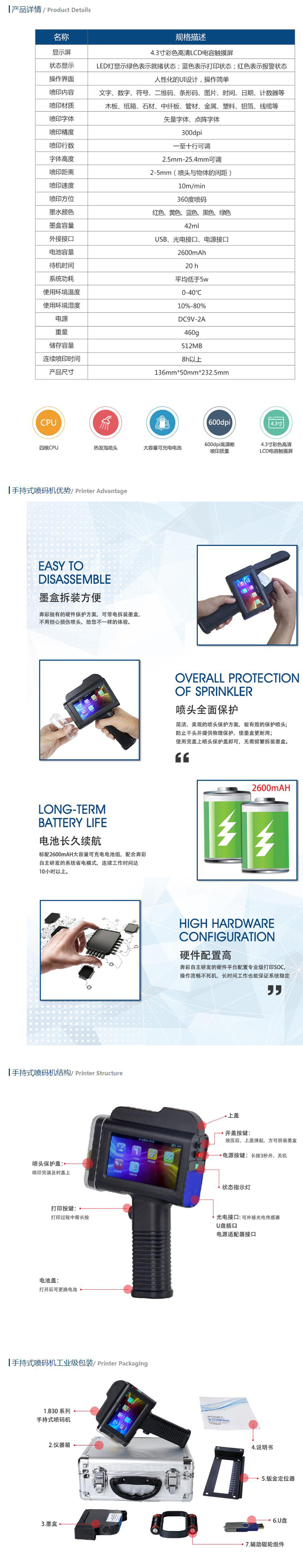 ·全封闭设计,防尘防泼水;喷头全方位保护
