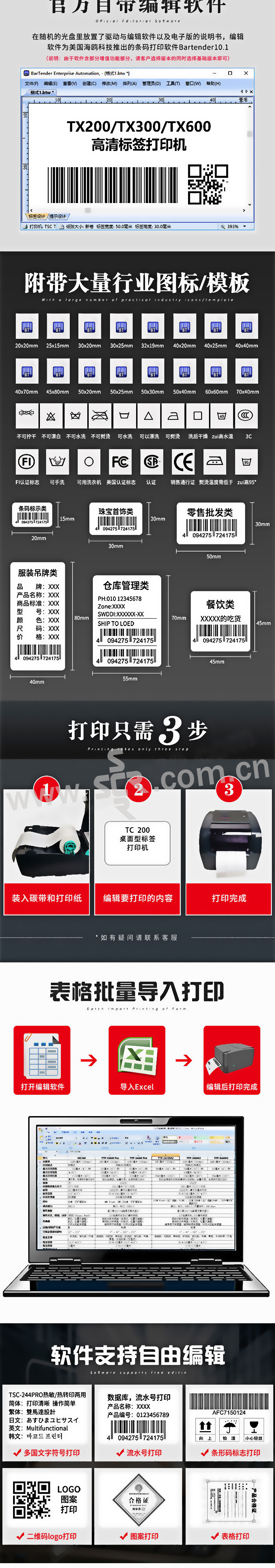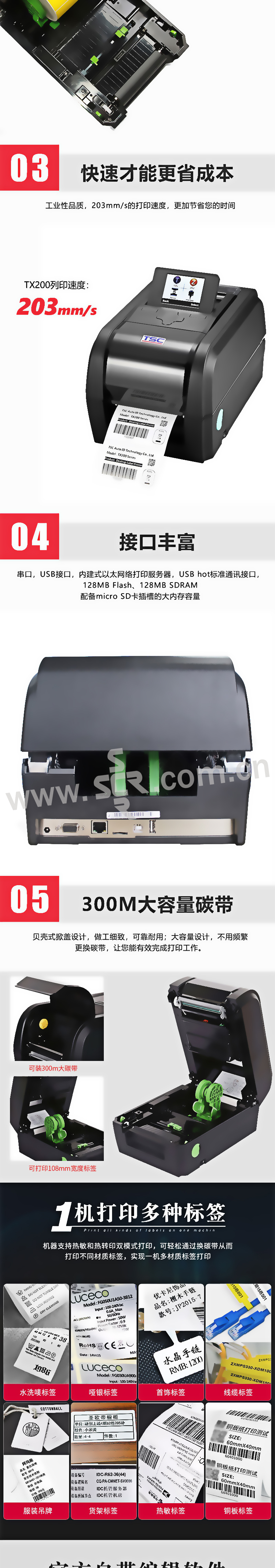 ·TSC台半TX200,工业条码打印机热转印不干胶标签机二维码条码打印机TX300TX600