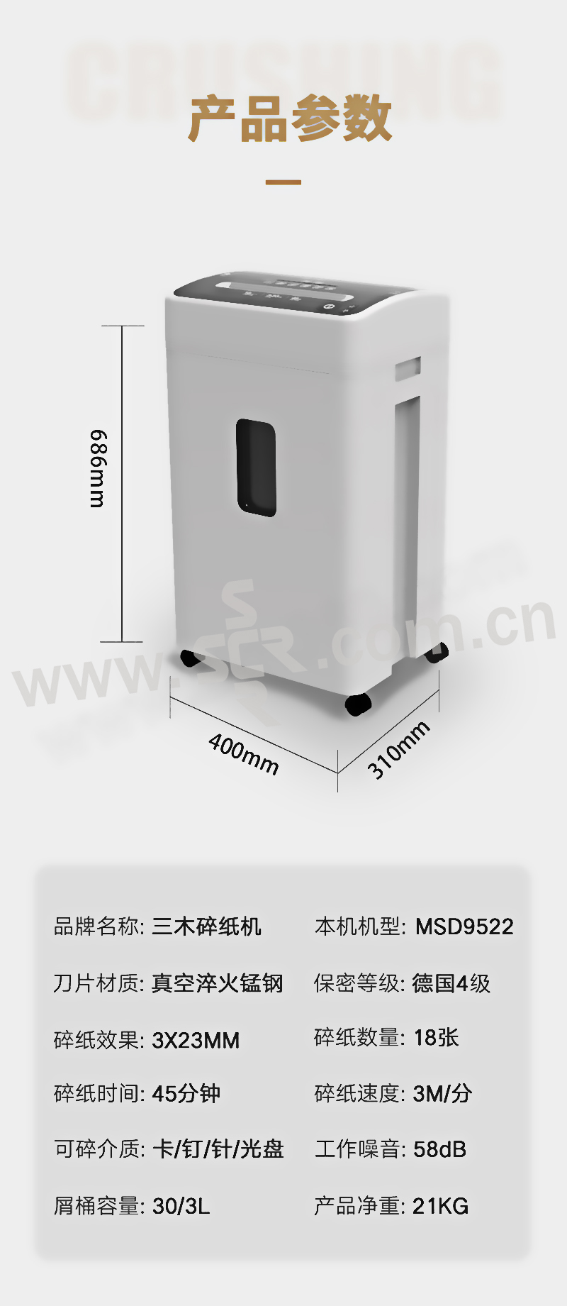 SUNWOOD/三木 碎纸机 MSD9522 单次碎纸19张 27L 碎纸效果3×23mm 1台