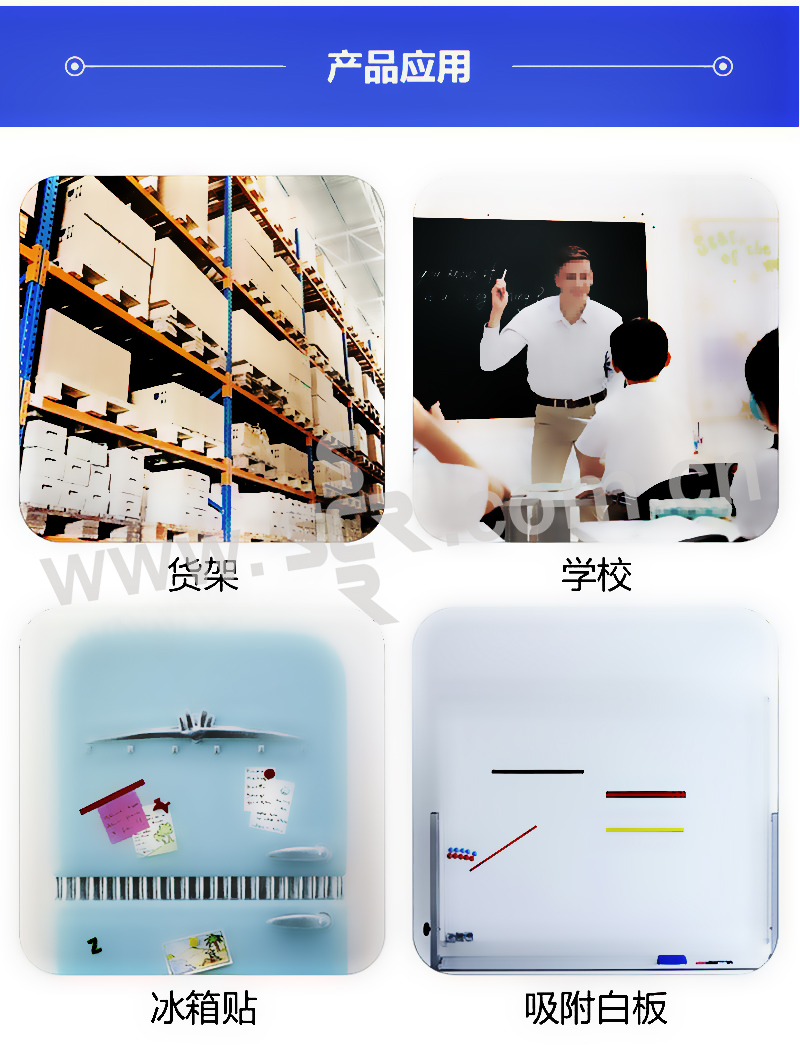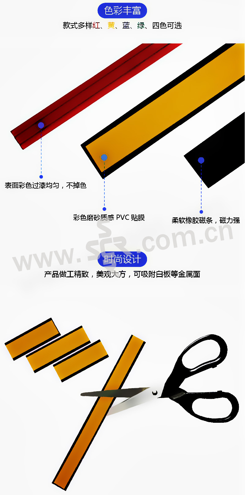 ﹒背面嵌入磁条,可吸附于铁器物体、办公白板等