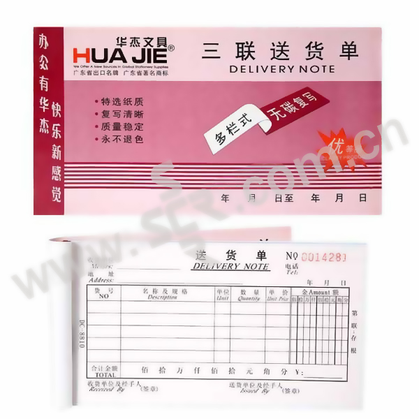 HJ/华杰 多栏经济型48开无碳三联横式送货单 SJ48302S 17.5×9.5cm 20本 1包