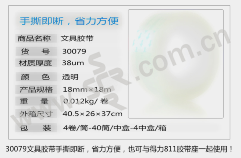 DELI/得力 学生胶带 30079 18m×18mm 透明 4卷装 1筒