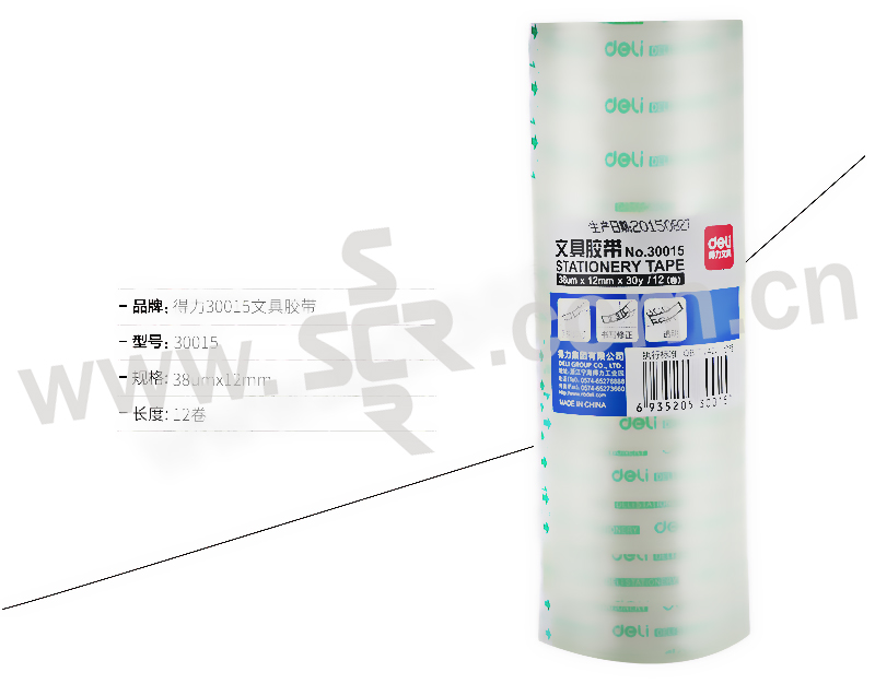 DELI/得力 文具胶带 30015 30y×12mm 透明 12卷装 1筒