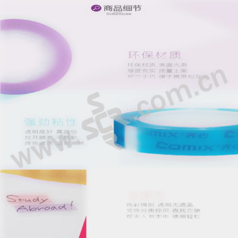 COMIX/齐心 高透明彩色文具小胶带 JF1230-8 12mm×30yd 8卷 1筒