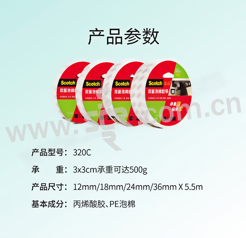 3M 思高双面泡棉胶带 320C-18 18mm×5.5m 96卷 1箱