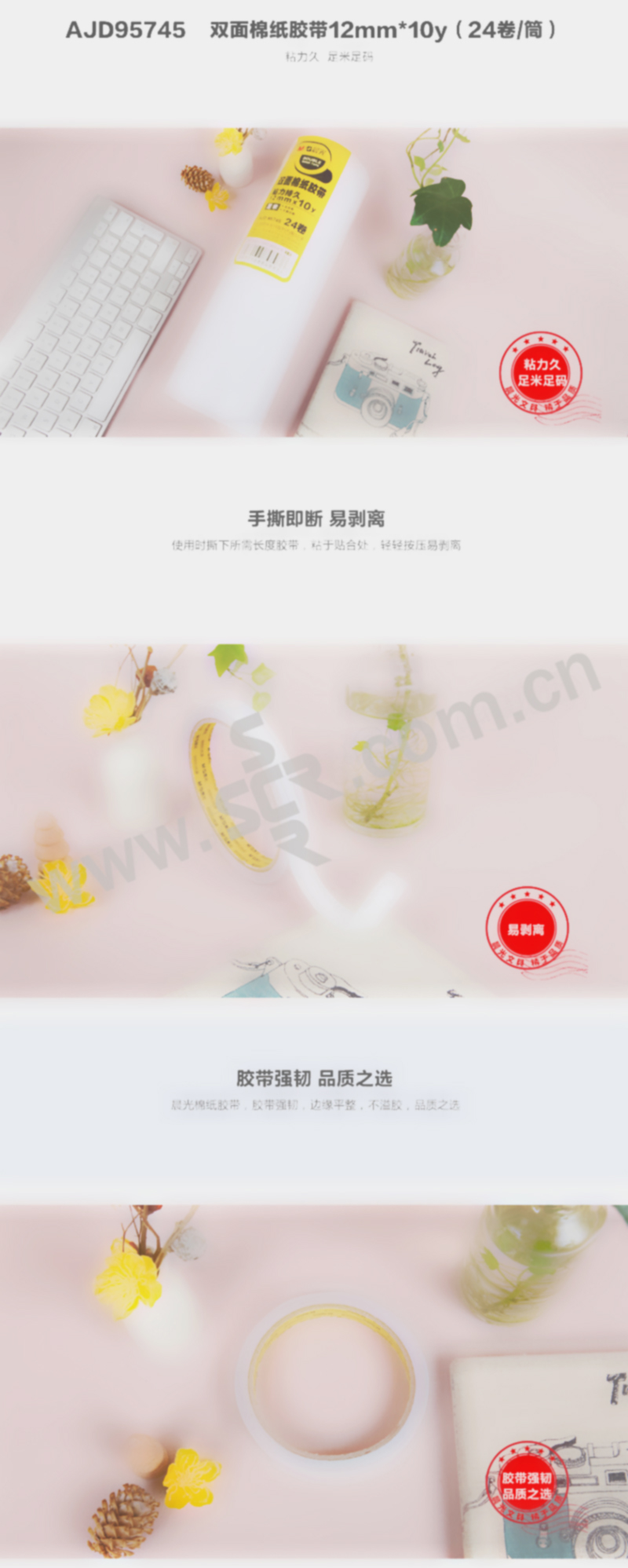 M&G/晨光 双面绵纸胶带 AJD95745 10yd×12mm 白色 24卷 1筒