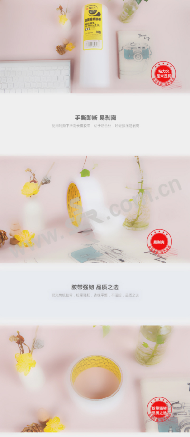 M&G/晨光 双面绵纸胶带 AJD95748 10yd×36mm 白色 8卷 1筒